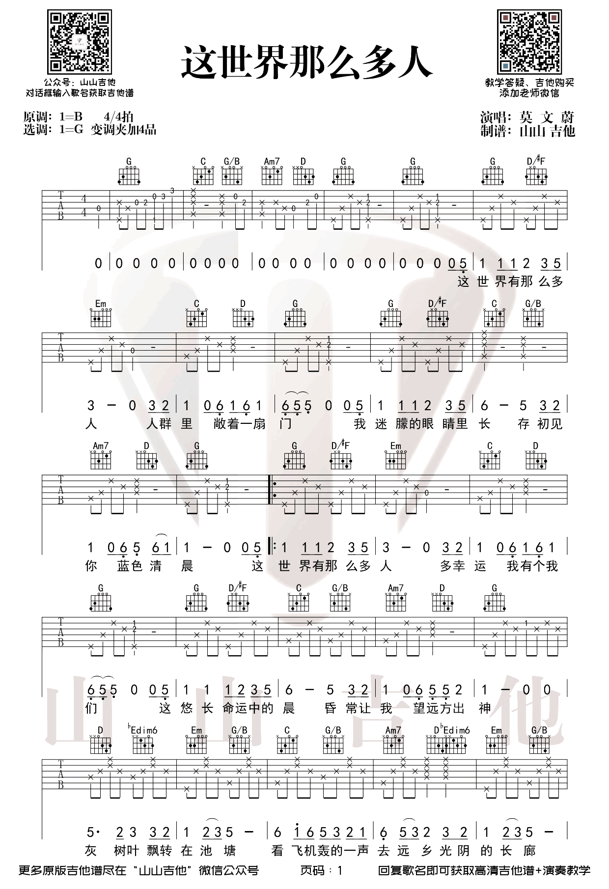 莫文蔚的一首新歌,《我要我们在一起》电影主题曲。这世界那么多人吉他谱,G调,变调夹夹四品,两张图片六线谱。附上吉他弹唱演示视频,方便同学们参照练习。这世界那么多人,很幸运遇见你,一起度过彼此生命中的一段青春。温暖的歌声唱出我们每个爱恋与哀愁,也唱尽了拼尽全力对抗现实的辛酸苦楚。