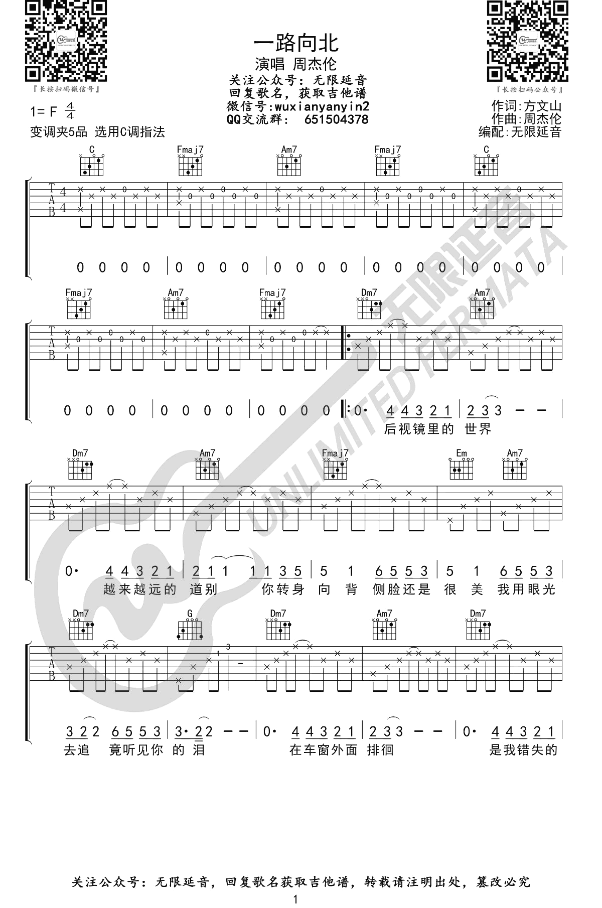 周杰伦的一首经典歌曲,来自于其执导主演的《头文字D》电影主题曲。一路向北吉他谱,原调F,变调夹五品,选用C调指法,三张弹唱图片谱。《一路向北》吉他弹唱教学视频,同学们跟随老师的讲解示范练习。听周杰伦的歌,都像是在听一段过去的回忆,曾经听不懂,没有多深的感触,如今再听就会想起过去的自己,越长大越喜欢当年的歌曲。