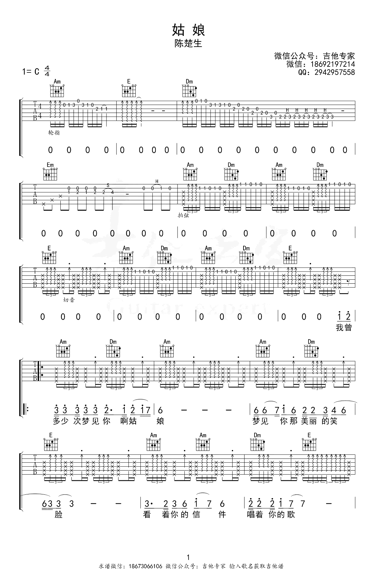 姑娘吉他谱_陈楚生_C调弹唱谱_弹唱示范视频 2023-02-16 • 来源 : 吉他专家 • 阅读 29330 姑娘吉他谱,陈楚生的经典代表歌曲,也是一首吉他装X神曲。随谱附上吉他演示演奏,琴友们参照老师的示范练习起来吧。 《姑娘》吉他弹唱谱,选用C调和弦指法,原调编配不用变调夹,六线谱共两张图片谱例。美妙的歌声是传递快乐的使者,把所有的一切都交给歌声吧! 陈楚生《姑娘》吉他谱-1 陈楚生《姑娘》吉他谱-2 相关吉他谱: 直到世界尽头吉他谱_陈楚生/王栎鑫_G调弹唱六线谱 客服WX:xxx61xxx 。免责声明:本文来自 吉他专家,仅供学习交流,如侵犯了您的合法权益,请联系本站,我们将及时处理。 民谣歌曲 0 0 生成海报 周兴哲《你,好不好》吉他谱_G调弹唱谱_高清六线谱 上一篇 2023-02-16 神奇草原吉他谱_豆包_C调弹唱六线谱 下一篇 2023-02-16 相关推荐 指弹谱 米兰的小铁匠指弹谱_吉他练习曲_指弹演示视频 米兰的小铁匠吉他指弹谱,无敌间奏改编,周杰伦的一首经典老歌,《米兰的小铁匠》吉他独奏谱,附上配套指弹演奏视频,间奏在2分40秒。 歌曲原调F调,变调夹加5品,标准调弦,C调和弦指法… 2022-01-18 6.0K01 指弹谱 天黑黑指弹谱_孙燕姿_吉他独奏演示/指弹教学视频 天黑黑指弹吉他谱,孙燕姿的经典代表歌曲改编,这首歌整体旋律性非常强,虽然和弦都比较简单,但因为旋律比较紧凑,演奏起来可能会有些手忙脚乱的感觉,需要琴友们多多练习提高流畅度。 随谱附… 2022-06-19 15.1K02 经典怀旧 一场游戏一场梦吉他谱_王杰_G调弹唱谱_高清六线谱 一场游戏一场梦吉他谱,王杰演唱的一首经典老歌,林宝馨抖音翻唱使其重新翻红。你如方寸柔弱的月光,也是湖水中呈现的重影,像那暂避风雨的流浪猫,趁夜黑闯进我的死胡同,那只是一场游戏一场梦… 2022-05-31 17.8K06 经典怀旧 下个星期去英国吉他谱_陈绮贞_C调弹唱谱_高清六线谱 下个星期去英国吉他谱,陈绮贞的一首经典代表歌曲,唱出了朋友间因生活变化而产生的距离感。《下个星期去英国》吉他弹唱谱,C调指法编配,变调夹夹一品,共两张高清图片六线谱。歌曲表达了对往… 2025-03-30 51600 经典怀旧 陀螺吉他谱_万晓利_C调弹唱谱_完整高清版 陀螺吉他谱,万晓利演唱,泪水在歌词里打转,深情在旋律中流淌。陀螺吉他弹唱谱,原调E,采用C调指法,建议变调夹4品,速度75BPM,演奏难度较简单易上手。 时间不停流转,无奈与收获总… 2023-01-15 5.3K00 吉他谱 我要找到你吉他谱_半吨兄弟_C调_吉他弹唱演示视频 半吨兄弟翻唱歌曲,我要找到你吉他谱,选用C调指法编配,CAPO男生2-5品女生不夹或降半音调弦。我要找到你吉他弹唱谱,三张图片六线谱,深蓝雨吉他编配并带来吉他弹唱视频,同学们可以跟… 2021-08-25 4.0K01 演示和教学 指纹吉他谱_胡歌_G调弹唱谱+和弦分析_吉他演示视频 指纹吉他谱,胡歌的一首老歌,电视剧《轩辕剑之天之痕》插曲,这首歌的原调是B大调,用的是G大调的指法来编配,两张图片六线谱。《指纹》吉他弹唱视频里是降半音调弦,想弹原调的琴友们需要标… 2021-11-15 9.3K01 指弹谱 听我说谢谢你指弹谱_简单版_吉他独奏视频_感恩歌曲 听我说谢谢你吉他指弹谱,根据李昕融的一首网络热门歌曲改编,Capo夹三品,简单版编配,两张图片谱例。听我说谢谢你,开了暖气,温暖了四季。谢谢你,美颜拉皮,世界更美丽。 《听我说谢谢… 2022-05-05 8.5K02 经典怀旧 最好的安排吉他谱_谢天笑_G调弹唱谱_高清完整版 最好的安排吉他谱,谢天笑演唱,唱出了对生命、情感等诸多未知的迷茫。《最好的安排》吉他弹唱谱,选用G调指法,带前奏间奏完整版编配,共4张高清图片六线谱。歌曲表达了对人生不可控境遇的接… 2025-11-12 28300 经典怀旧 老情歌吉他谱_吕方_ C调指法_高清弹唱谱 老情歌吉他谱,吕方一首经典怀旧老歌,唱出了悠悠岁月情怀,温情而毫不张扬的中低音,把简简单单的词唱成了烟,袅袅的飘荡到耳朵里面,让我们想起一些人,一些事?仿佛时光开始倒流。 《老情歌… 2022-09-24 8.0K00 发表回复 您的邮箱地址不会被公开。 必填项已用 * 标注昵称: 邮箱: 网址: 记住昵称、邮箱和网址,下次评论免输入 提交