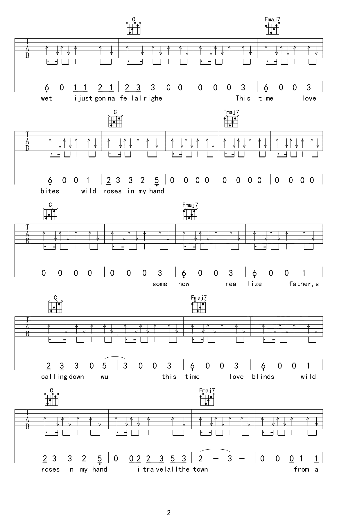 《夏日漱石》吉他六线谱,原调E选调C,变调夹夹四品,三张图片谱。