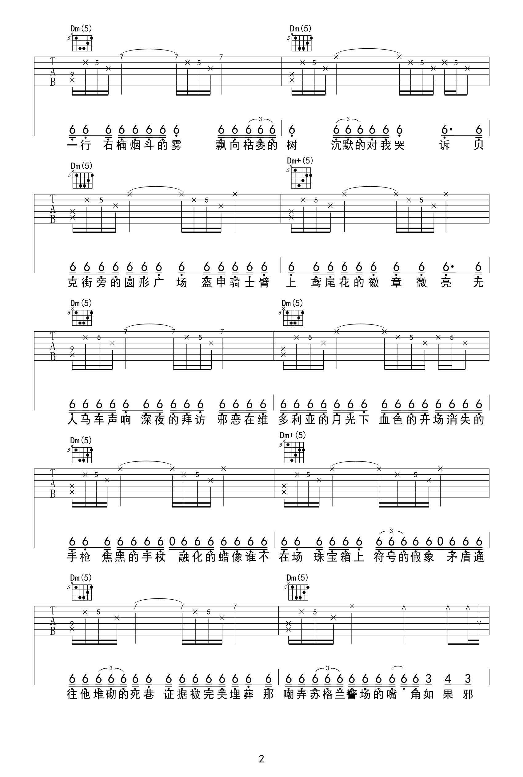 夜的第七章吉他谱,周杰伦演唱,《夜的第七章》吉他弹唱谱,F调和弦指法编配,完整版共六张高清图片六线谱,吉他帮分两页呈现。