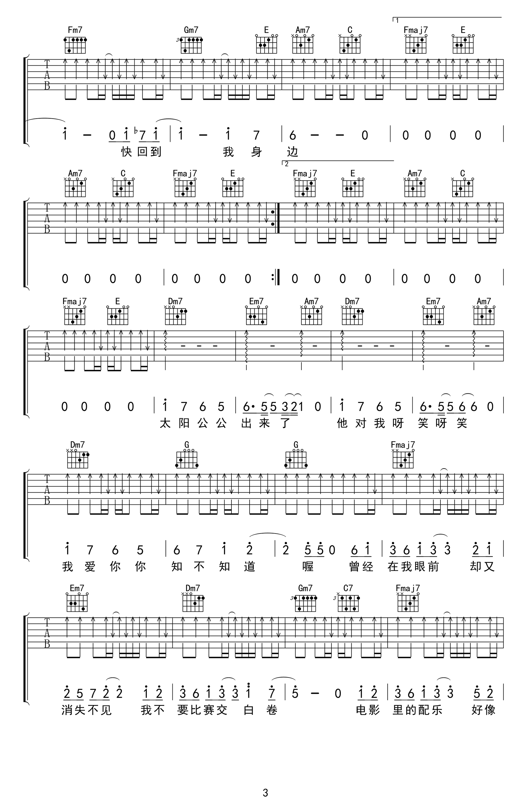 我爱你吉他谱,卢广仲演唱,唱出我们友达之上恋人未满的心声。《我爱你》吉他弹唱谱,原调D,选用C调指法,变调夹夹二品,完整编配共四张高清图片六线谱。