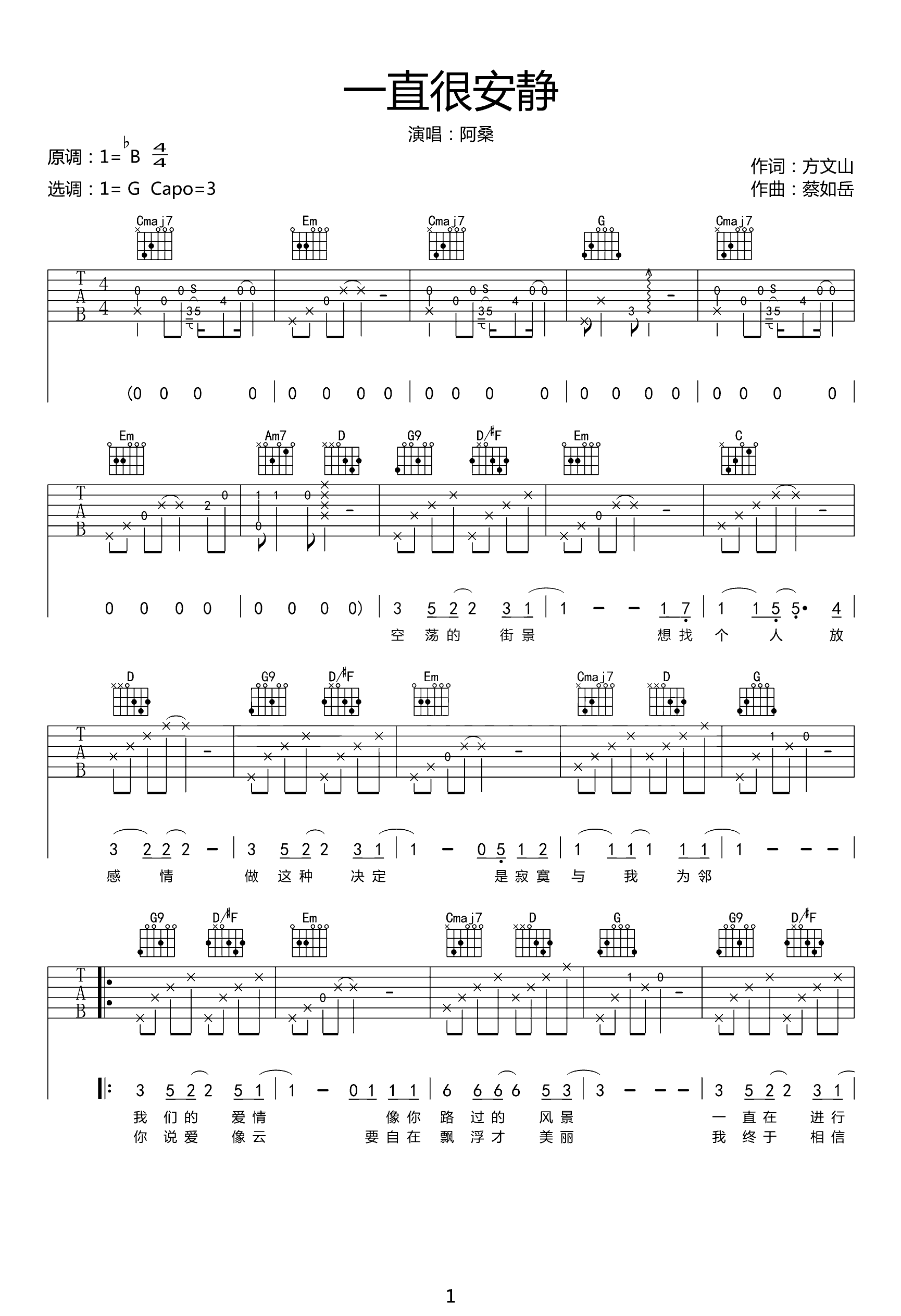 点赞《一直很安静吉他谱_阿桑_G调原版_高清弹唱六线谱》文章