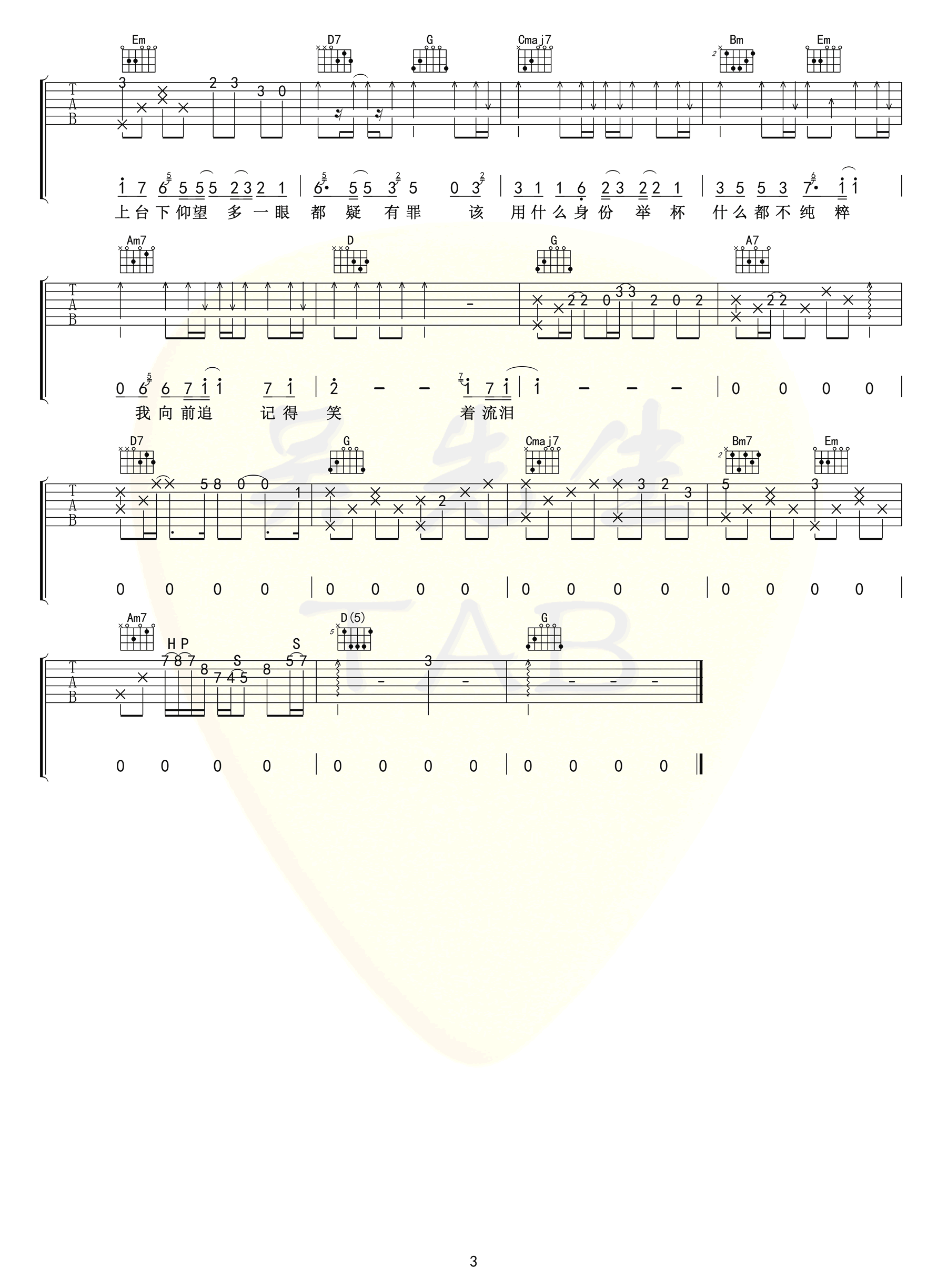 鼎沸吉他谱_陈亦洺_某某广播剧主题曲_高清弹唱六线谱 2021-07-06 • 来源 : 吴先生TAB • 阅读 5056 陈亦洺演唱《某某》广播剧第一季主题曲,《鼎沸》吉他谱,选用G调指法,降半音调弦,三张高清弹唱图片谱。张开手拥抱狼狈,一个人迈过十七岁。夏日骄阳正好,风吹过树梢,斑驳光影映照人间少年路,唯愿彼此今后人生鼎沸,引领直通山巅。 客服WX:xxx61xxx 。免责声明:本文来自 吴先生TAB,仅供学习交流,如侵犯了您的合法权益,请联系本站,我们将及时处理。 吴先生TAB影视歌曲 0 0 生成海报 那些花儿吉他谱_朴树_G调弹唱六线谱_原版吉他教学 上一篇 2021-07-06 慢慢喜欢你吉他谱_莫文蔚_G调_弹唱教学视频 下一篇 2021-07-07 相关推荐 流行歌曲 马吉他谱_福禄寿_C调弹唱六线谱_高清完整版 马吉他谱,福禄寿演唱,歌曲情感真挚,从悲伤到释怀,展现了主人公内心的挣扎与成长。《马》吉他弹唱谱,选用C转D调指法编配,完整版共三张高清图片六线谱。歌曲讲述了一段悲伤的爱情故事,面… 2025-01-13 1.2K00 网络歌曲 爱财爱己吉他谱_艾北_C调弹唱谱_高清六线谱 爱财爱己吉他谱,艾北演唱的一首热门网络歌曲。《爱财爱己》吉他六线谱,原调bE,选用C调指法,变调夹capo3品,高清弹唱谱共两张图片谱例。 曾经我深陷情感漩涡,失去自我,一败涂地。… 2023-11-01 3.1K01 流行歌曲 飞儿乐队《我们的爱》吉他谱_G调_弹唱六线谱 我们的爱吉他谱,飞儿乐队演唱的一首经典代表歌曲,超好听,满满的回忆杀。《我们的爱》吉他弹唱谱,原调bA,选用G调指法编配,CAPO一品,高清图片共两张六线谱。 我们的爱,过了就不在… 2023-03-04 3.5K00 流行歌曲 阿楚姑娘吉他谱_梁凡_C调弹唱谱_完整版六线谱 阿楚姑娘吉他谱,梁凡深情演绎,唱出了对爱人的深深眷恋与无尽思念。《阿楚姑娘》吉他弹唱谱,选用C调指法编配,原调演奏不用变调夹,完整版共4张高清图片六线谱。旋律悠扬,歌词质朴,仿佛一… 2024-09-27 2.1K01 网络歌曲 世间的酒你醉了没有吉他谱_陶安平_G调弹唱谱_完整版 世间的酒你醉了没有吉他谱,陶安平演唱,《世间的酒你醉了没有》吉他弹唱谱,原调bB,选用G调指法编配扒谱,建议变调夹3品,演奏易上手,速度95难度较简单。 这世间美酒醉了你吗?当你抬… 2023-05-10 2.5K00 流行歌曲 白日猫吉他谱_易烊千玺_C调弹唱谱_完整高清版 白日猫吉他谱,易烊千玺演唱,《白日猫》吉他弹唱谱,原调bD,选用C调指法编配,建议变调夹1品,速度130难度较简单,演奏易上手。 这首曲子采用了Reggae演奏织体的框架,在描述“… 2023-05-28 2.6K00 网络歌曲 可可托海的牧羊人吉他谱_王琪_G调弹唱六线谱 可可托海的牧羊人吉他六线谱,王琪的一首网络热门歌曲,《可可托海的牧羊人》吉他弹唱六线谱,4/4拍的节奏,难度为低级。歌曲原调为降A调,这里曲谱采用G调指法进行编配,演唱时夹变调夹1… 2023-10-20 2.3K00 网络歌曲 我搞不懂吉他谱_甘草片r_C调弹唱谱_完整高清版 我搞不懂吉他谱,甘草片r演唱,突然发现,我们身边搞不懂的事情有这么多。《我搞不懂》吉他弹唱谱,原调升C,采用C调指法编配,建议变调夹1品,速度85BPM,演奏难度较简单易上手。 谈… 2022-11-09 3.1K00 告五人 告五人《带我去找夜生活》吉他谱_C调原版_弹唱六线谱 带我去找夜生活吉他谱,告五人演唱的一首好听的歌曲,带来一种烟火气中又有恍若隔世的浪漫。能够清晰地觉察自己的感受,能够带着觉知体验生活中的每一个瞬间,这才是我们真正想要的生活。 《带… 2022-03-27 12.5K00 精品吉他谱 一分一寸吉他谱_不是花火呀_C调弹唱谱_高清六线谱 不是花火呀翻唱,阿YueYue的一首网络歌曲,一分一寸吉他谱,原调升F,选用C调指法编配,变调夹夹六品,《一分一寸》吉他弹唱谱,高清完整版共两张图片六线谱。 一颗心被伤了太多次,慢… 2021-12-23 3.6K00