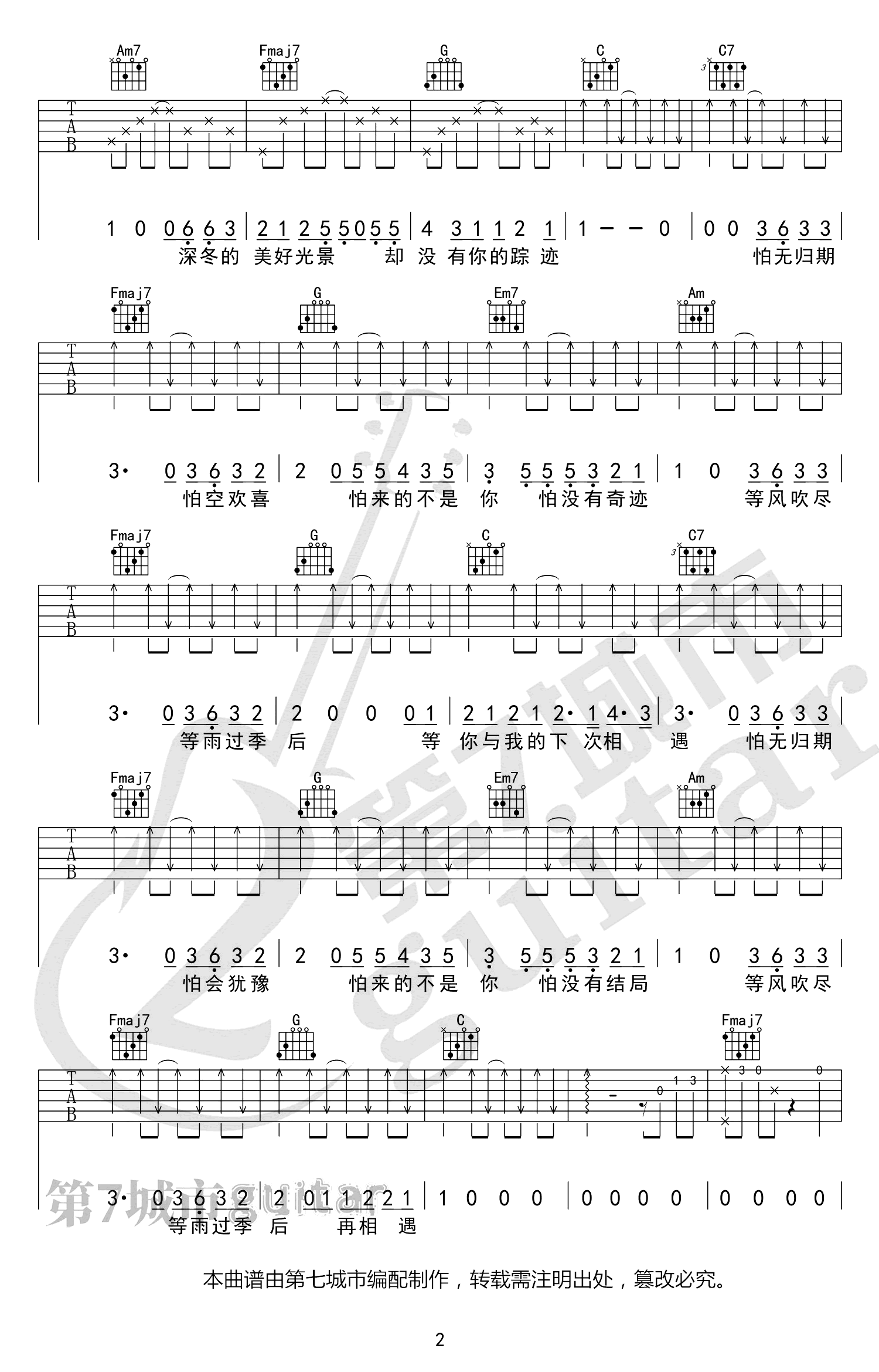 小蓝背心一首网络音乐平台热门榜歌曲,我怕来者不是你吉他谱,原调E选调C,变调夹夹第四品,《我怕来者不是你》吉他弹唱谱,三张图片六线谱。这首歌是小蓝背心的原唱,但在抖音最火的是胖虎的翻唱版,真是听一遍就洗脑了,满脑子旋律都变成了85归7……愿你喜欢的人刚好喜欢你哦,喜欢的就跟随吉他谱学起来吧!