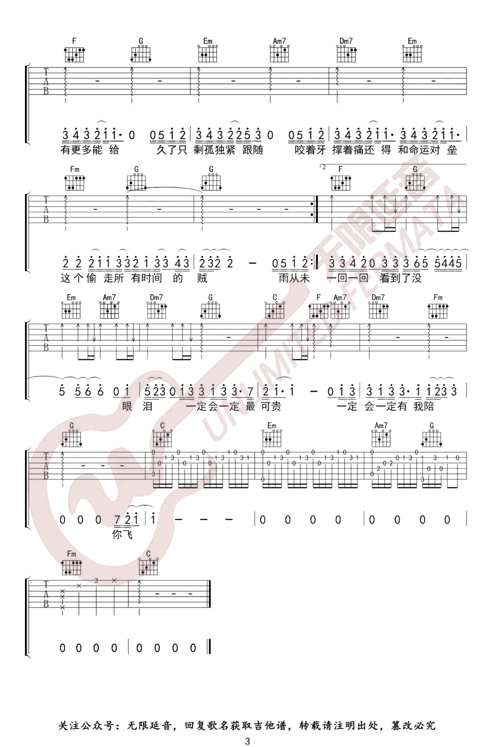 林俊杰的一首年末暖心EP新歌,一定会吉他谱,原调D,变调夹2品,选用C调指法,《一定会》吉他弹唱谱,三张图片六线谱。吉他帮网站更新上传。
