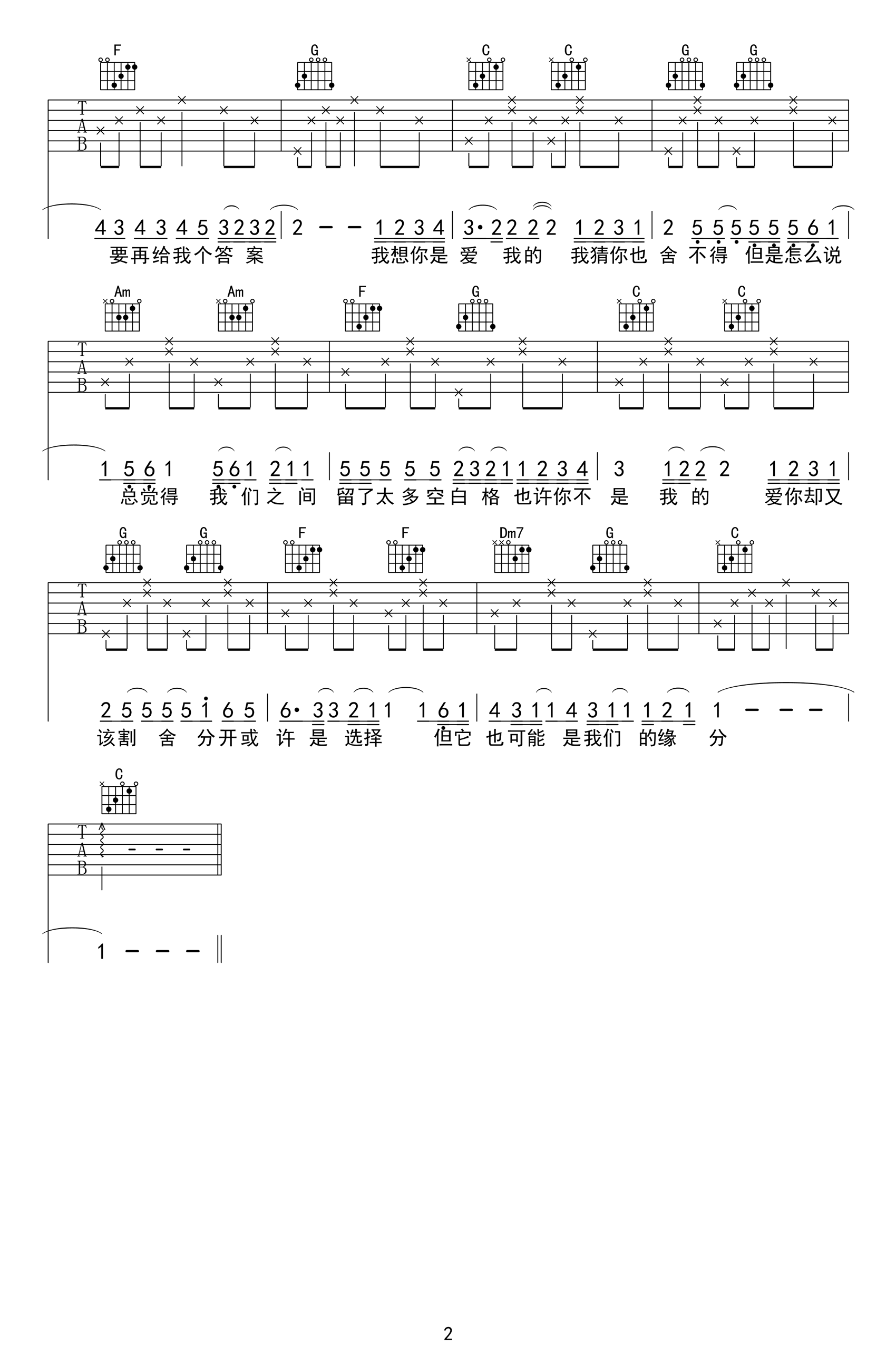 《空白格》吉他弹唱谱,选用原调C调,简单版编配,两张高清图片六线谱。快乐不知时日过,痛苦偏觉岁月长。《一生一世》电影片尾曲,