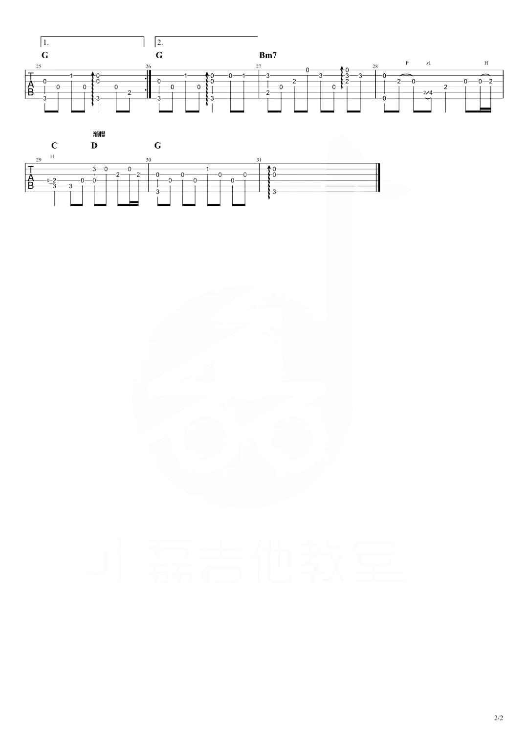 曲谱共两张图片六线谱,整体演奏的难度是偏低的,加入了一些二次的滑音使得曲子听起来不会太枯燥,编配后值得琴友们认真学习。