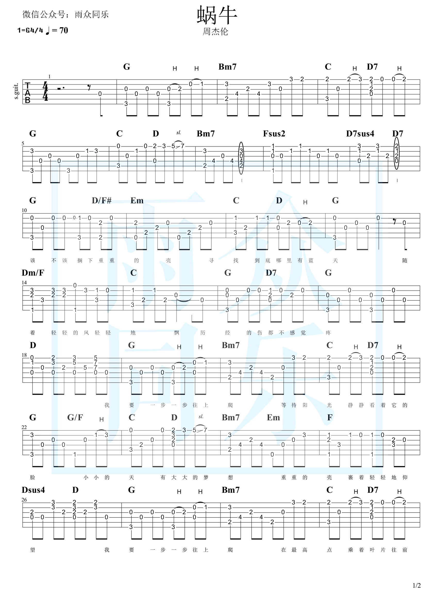 蜗牛指弹谱_周杰伦_吉他独奏谱_简单入门版 2021-12-18 • 来源 : 雨众同乐 • 阅读 8770 周杰伦一首积极向上的励志歌曲,蜗牛吉他指弹谱,很简单的独奏,适合入门学习用,《蜗牛》吉他独奏谱,两张图片谱例。 这首歌曾给多少人带来了感动与能量,每个人都拥有属于自己的一片天空。歌曲平实中见风格,舒缓中有力量,能够给人勇气,让人奋进前行。 客服WX:xxx61xxx 。免责声明:本文来自 雨众同乐,仅供学习交流,如侵犯了您的合法权益,请联系本站,我们将及时处理。 0 0 生成海报 学猫叫吉他谱_G调_小潘潘/小峰峰_高清弹唱六线谱 上一篇 2021-12-18 你不知道的事吉他谱_C调_王力宏_弹唱六线谱 下一篇 2021-12-18 相关推荐 周杰伦 你怎么连话都说不清楚吉他谱_周杰伦_C调完整弹唱谱 你怎么连话都说不清楚吉他谱,周杰伦给蔡依林写的一首经典老歌,《你怎么连话都说不清楚》吉他弹唱谱,原调降B,选用C调和弦指法,建议变调夹1品,演奏速度85BPM,难度较简单易上手。 … 2023-01-26 9.7K00 周杰伦 红尘客栈吉他谱_周杰伦_C调弹唱谱_高清完整版 红尘客栈吉他谱,周杰伦演唱,以武侠与爱情为主题,充满古风韵味,表达了一种浓烈而真挚的情感。《红尘客栈》吉他弹唱谱,选用C调指法编配,六线谱完整版共三张高清图片谱。通过侠客为美人封刀… 2024-07-25 10.0K00 英文歌曲 Silent night指弹谱_平安夜吉他独奏谱_圣诞歌曲 Silent night指弹谱,一首脍炙人口的圣诞歌曲,《Silent night(平安夜)》吉他独奏谱,特殊调弦,三张图片六线谱。 在这个浪漫的圣诞节前夜,适合来一场小雪,在街区… 2022-12-24 7.0K03 指弹谱 猪八戒背媳妇指弹谱_《西游记》插曲_C调_吉他独奏谱 央视电视剧《西游记》插曲改编,猪八戒背媳妇指弹吉他谱,许镜清老师的经典代表作品,《猪八戒背媳妇》吉他独奏谱,一张图片谱例。欢乐喜庆诙谐幽默的旋律曲调,满满的都是童年的美好记忆。 2021-10-20 11.2K05 指弹谱 花海指弹谱_周杰伦《花海》吉他指弹教学_简单版am练习曲 花海指弹吉他谱,周杰伦经典歌曲改编,Capo夹四品,三张图片谱例。《花海》吉他独奏视频由潇潇老师演示弹奏,曲子是标准音夹4品,用到的技巧主要是am技巧,最后有个人工泛音,整体难度不… 2021-12-28 41.0K11 张杰 只要平凡指弹谱_《我不是药神》主题曲_吉他指弹视频 只要平凡指弹吉他谱,改编自电影《我不是药神》主题曲,吉他只需要调六弦为D,整体来说都是比较简单的技巧和和弦,吉他独奏谱共两张图片谱例,琴友们一起看潇潇老师《只要平凡》吉他指弹演奏视… 2021-12-21 8.6K02 演示和教学 花海吉他谱_周杰伦_G调弹唱谱_吉他教学视频 周杰伦的一首好听的歌曲,花海吉他谱,原调A,变调夹夹第二品,选用G调指法,三张弹唱六线谱。附上《花海》吉他弹唱教学视频,喜欢这首歌曲的同学们参考练习。“不要你离开,距离隔不开。思念… 2021-09-02 63.0K010 指弹谱 Always With Me指弹谱_千与千寻片尾曲_吉他独奏视频 Always With Me吉他指弹谱,动画电影《千与千寻》片尾曲,永远在一起指弹吉他谱,韩国jinsung Lee的版本,共四张图片谱例。随谱附上《Always With Me》… 2022-07-04 7.4K03 指弹谱 Next to you指弹谱_寄生兽BGM_吉他独奏谱_示范音频 Next to you吉他指弹谱,动漫作品《寄生兽》的BGM,《Next To You》吉他独奏谱,一首经典的动漫插曲,无数人的回忆,原调升E,变调夹夹三品,指法简单,适合喜欢指弹… 2022-09-15 6.5K10 演示和教学 稻香吉他谱_周杰伦_A调带前奏_吉他弹唱演示 周杰伦一首温暖治愈的歌曲,稻香吉他谱,选用原调A调编配,带前奏尾奏六线谱。周杰伦08年的作品,很多人也是因为这首歌被杰伦圈粉,在那特殊的一年,太需要这样的歌曲了!今天把谱子和弹唱演… 2021-06-12 42.8K013 发表回复 您的邮箱地址不会被公开。 必填项已用 * 标注昵称: 邮箱: 网址: 记住昵称、邮箱和网址,下次评论免输入 提交