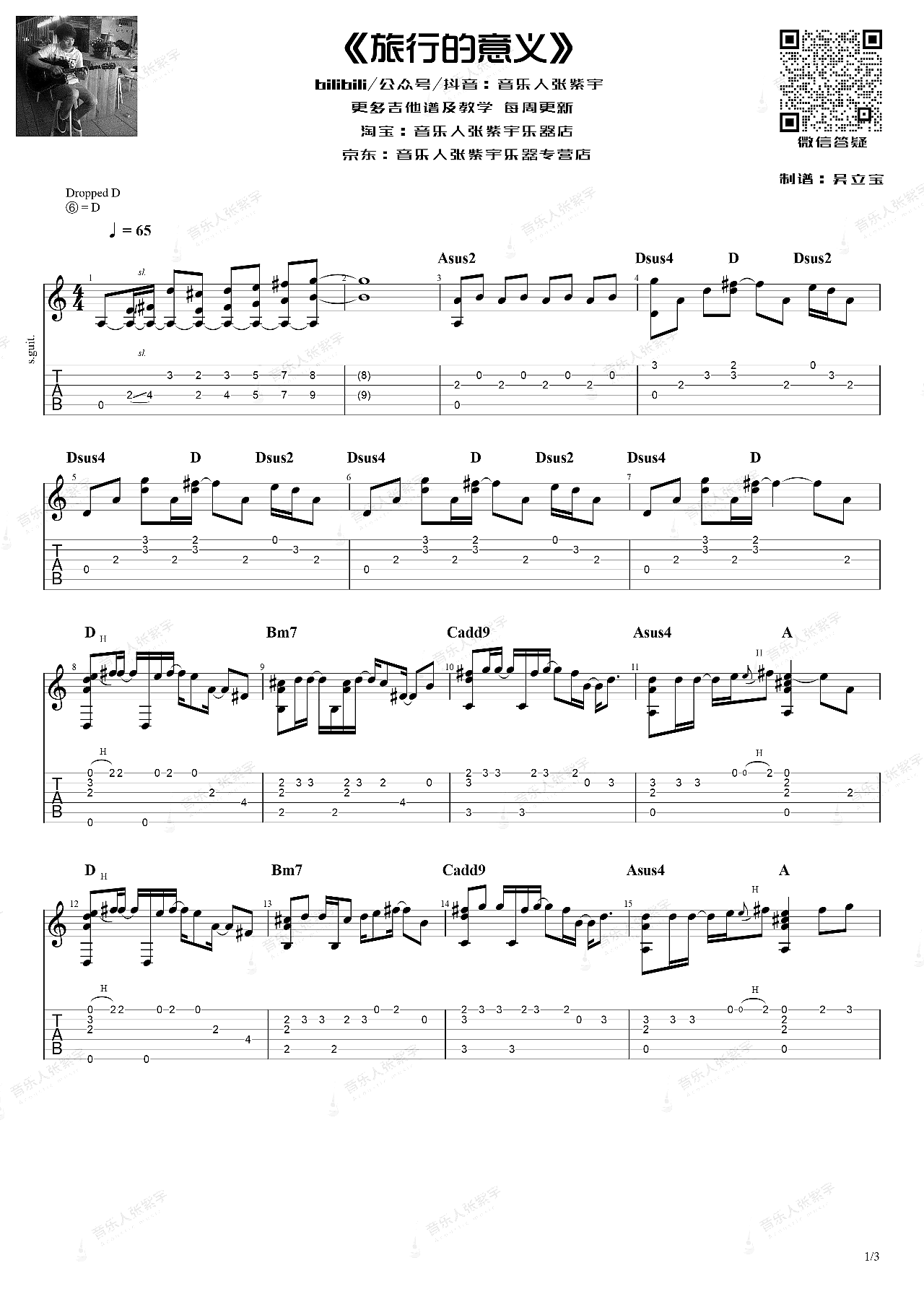 旅行的意义指弹吉他谱,改编自陈绮贞的经典代表作品。简约的旋律搭配诗一样的歌词,跟吉他的气质最符合了。改编的时候,老师把6弦降低一个音到D,稍微优化了一下指法同时让低音更足,附上《旅行的意义》吉他演示和教学视频,琴友们参照张紫宇老师的示范讲解学习。